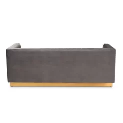 Make a chic statement in your living room with the Aveline sofa. Featuring a sleek silhouette, the Aveline is upholstered in a rich velvet fabric that feels exceptionally soft to the touch. Channel tufting highlights the stunning sheen in the velvet, while the striking antique gold finished metal base anchors the glamorous look of this sofa. Designed for both style and comfort, the Aveline is generously padded with foam to provide a truly luxurious feel. The Aveline sofa is made in China and will arrive fully assembled.