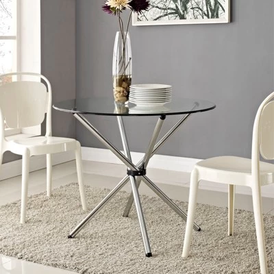 Introduce an edgy style to your kitchen or dining room adventures with the Baton modern table. Topped with tempered glass, and a gathered “baton” base, collect your own assemblages of family and friends as you welcome in the (peacefully) unexpected. The chrome plated tubular base comes capped to prevent scratching.
