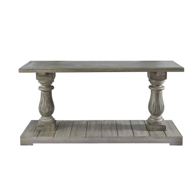The Picket House Furnishings Baxter Rectangular Sofa Table is going to look fabulous in your home! This item can be displayed in the living room or even as an accent piece in your bedroom, whatever you decide! The two pedestal legs sit on a base giving this piece a unique design. The distressed finish makes this piece easily fit into your rustic, farmhouse design that you love! This end table is made up of solid, Brazilian pine and will naturally take on it’s own texture and tone throughout the years; making it the perfect piece to pass down generation to generation.