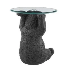 Bring a playful touch of the wooded outdoors to your home. A unique accent to any room in your home, this whimsical Bellamy Bear Side Table will soon become your favorite piece. A clear, tempered glass with a beveled edge tabletop is being held up by the adorable hand-painted resin bear, lending a helping paw to hold your lamp, books or drinks. Minor assembly required.