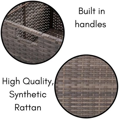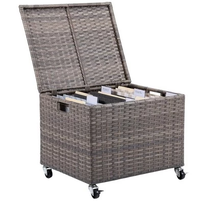 The BirdRock Home Synthetic Rattan Rolling File Cabinet is the perfect file organizer for your office or home office. The box adds a stylish and decorative accent, unlike the old fashioned metal filing cabinets commonly found in offices today. The file cabinet can hold both letter or legal sized hanging files. The base of the cabinet features four durable wheels allowing it to roll where ever you need it making it perfect for smaller spaces. It also features an easy to open lid, allowing you to conceal your files. While it’s ideal for files, the storage bin is also great for storing other household items. Easily store pillows, blankets, books, magazines, or toys, keeping your home organized and neat. The storage bin is constructed of durable and robust synthetic rattan, allowing it to be the accent of your office or home for years to come.