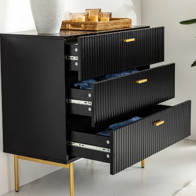 - VERSATILE STORAGE USE: This modern three-drawer cabinet set offers versatile storage options for your bedroom, living room,dinning room, or entryway, allowing you to store clothes, accessories, media equipment, keys, and everyday essentials with ease.
