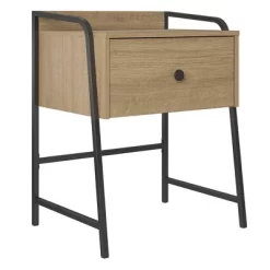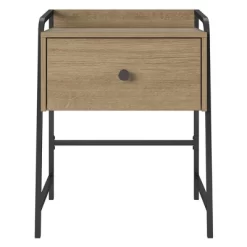 Give your bedroom a fresh makeover with the Bushwick Collection from Novogratz. This rustic Nightstand is comprised of engineered wood with a natural wood grain finish atop an industrial style power coated metal frame. The roomy drawer provides plenty of space for bedside essentials right where you need them most. Complete the look with the entire Bushwick collection. (each sold separately) The Nightstand with Drawer ships flat in one box and requires assembly. Two adults are recommended to assemble. Once assembled, the Nightstand measures to be 20.95” W x 16.3” D x 26.6” H.