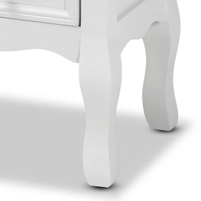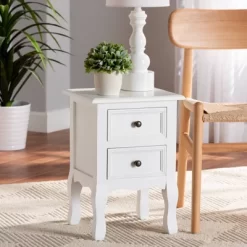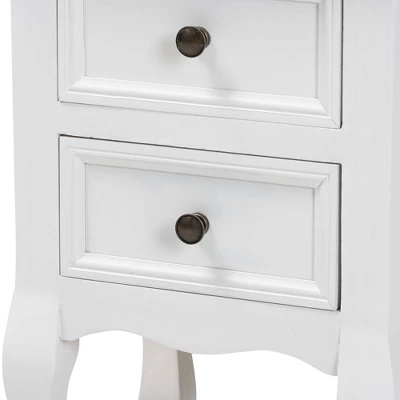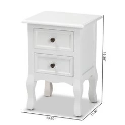 Arrange a charming interior layout with the classic elegance of the Caelan end table. Made in China, this end table is crafted from sturdy wood. Two drawers accented with inset paneling provide ample storage space to organize a variety of household essentials. Comes fully assembled, the Caelan is supported by cabriole legs for excellent stability and support in expressive design. Round drawer knobs give the end table a varied visual texture, making the Caelan a remarkable addition to the modern home. Overall Dimensions: 19.30″ High x 13.80″ Wide x 11.80″ Deep; Drawer Dimensions: 8.70″ Wide x 10.00″Deep x 4.30″High; Legs: 8.70″ High;