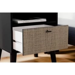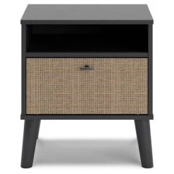 Put a retro spin on current trends with this nightstand. Its mixed-material look of matte black and replicated beige cane brings a casually cool feel to your bedroom. Simple, sleek hardware and splay legs round out the urban meets mid-century vibe. A nightstand, or bedside table, is an essential component in every bedroom. Whether you’re looking for a white nightstand, black nightstand or even a mirrored nightstand, Ashley has what you need to create the bedroom of your dreams. Ashley goes the extra mile to package, protect and deliver your purchase in a timely manner. The trusted source for stylish furniture, lighting, rugs, accessories and mattresses for every taste and budget, our wide assortment brings your space to life with furniture and decor that show off your style personality. Signature Design by Ashley is a registered trademark of Ashley Furniture Industries, Inc..