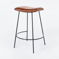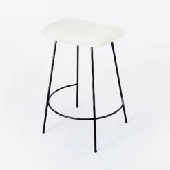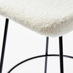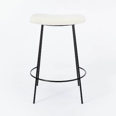 Create a modern, sleek and timeless look with the Clarkston Metal Counter Height Barstool with Upholstered Seat from Threshold™ designed with Studio McGee. This upholstered barstool makes a perfect addition to your space. The black metal legs and genuine brown leather or cream boucle upholstery create a classic and elegant design. The high contrast elements add a touch of boldness while still being subtle enough to complement other pieces of furniture or accent decor. This rectangular counter height barstool is ideal for kitchen or bar areas, and the neutral colors and textures work perfectly with a variety of design themes and elements.