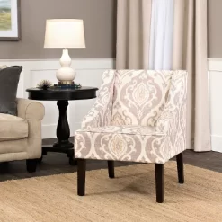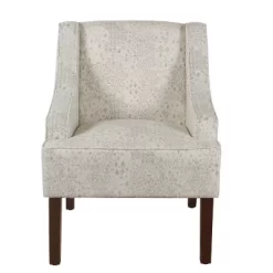 The pairing of a best-selling Classic Swoop Accent Chair with popular patterned fabrics creates the perfect seating solution for any room of your home. Featuring a range of patterns, this swoop chair works well with a range of design styles. Pair this intriguing accent chair with other neutrals or grays in the same space and allow it to be the speaking point of the room. Featuring wood legs, this accent chair is easy to assemble and maintain.