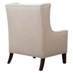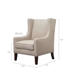 Surround yourself in style with a Colette Wing Chair in linen by JLA Home. This chic accent chair combines sophistication and comfort with its beautiful sculptural design, textured fabric and generous seat depth. It sits sturdily on solid wood legs with a warm espresso finish. Tuck this wingback chair in your home office to give yourself a place to relax and read.