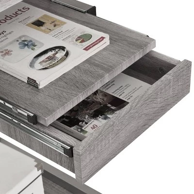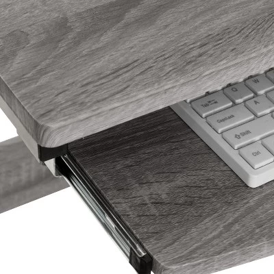 This Techni Mobili Complete Space Saving Computer Workstation lends an air of traditional workmanship to its versatile contemporary design. The sturdy design is made of heavy-duty engineered wood panels with a moisture resistant PVC laminate veneer and a scratch-resistant powder-coated steel frame. The keyboard shelf , adjacent shelf and utility drawer are all mounted on slide out tracks featuring safety stops and have a 30 lbs. weight capacity. The spacious desktop can hold up to 80 lbs. Color: Gray.