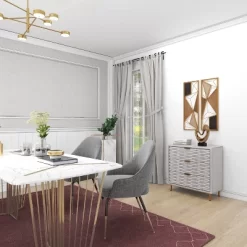 - •White and gold 3-drawer chest made of robust and long-lasting metal and wood materials