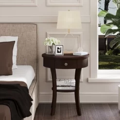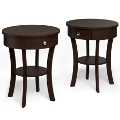 - Elegant Appearance: This round side table has a classic and vintage look. The elegant color of the dark chocolate top will add flair to your room wherever you place it. The four classic under-sweep support legs are not only stable and provide a weight capacity of up to 168 pounds, but they add a sophisticated touch to the side table, making the furniture less monotonous.