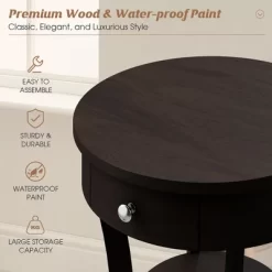 - High-quality Materials: Supported by high-quality MDF, this round side table has great strength and is perfect for long-term use. The drawer slides are made of rubber wood to ensure that they do not warp. In addition, the dense and smooth tabletop is water resistant, and you can easily clean stains and dust from the table with a towel to keep its shine.