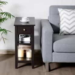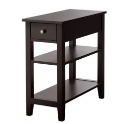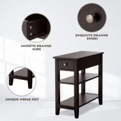 Cater to your stylish rooms, this nightstand comes with modern look and classic style. And the end table is designed with practical and simple concept for catching your eyes and perfect for your sofa, bed or any interior furniture. Being a highlight of the coffee table , it has 1 drawer and 2 open storage shelves for small things like keys or remote controls. If utility is its advantage, its unique design in details also make it better for your life. It features a contrasting metal pull, so you can easily access the contents of the drawer. What’s more, its size are designed for narrow spaces like sofa or chair side, which cannot occupy too much of space. The simple look represents the simple life, but it can provide you with more enjoyment.