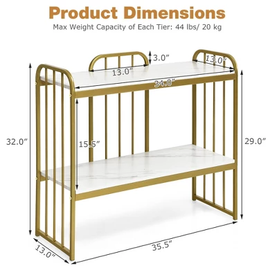 - Sleek & Glossy Golden Frame: The stylish buffet serving table also boasts its sleek steel frame with golden finish. It is made of painted heavy-duty steel, which is sure to provides reliable support. Thus, each shelf can support up to 44 lbs. And the feet are fitted with anti-scratch gaskets to protect the floor from scratches.