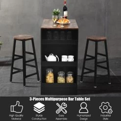 - Multifunctional Bar Set in Industrial Style: This bar table set features classic color, clean lines and open design that can perfectly match with any room decor. With its spacious desktop, you can easily place rolls, cold cuts, and freshly squeezed orange juice on it. Apart from serving as a bar set, it can also serve as a dining set to have breakfasts.