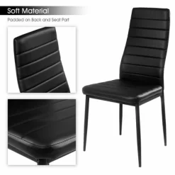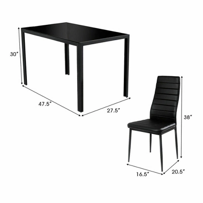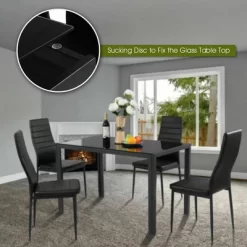 - Delicate Design: This Giantex kitchen dining set includes one tempered glass top table and 4 PVC leather chairs which makes it looks fantastic in any dining room. There is no doubt to say that such an elegant addition and suit any decor style dining room with the black colors.