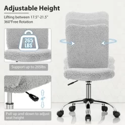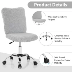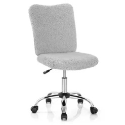 This office chair offers you a comfortable user experience with good quality and high reliability. Designed with an idea of flexible usage, the office chair is a great option for working, studying, making up and more. Filled with high density sponge inside and covered with soft faux fur, the task chair helps you alleviate back fatigue after sedentary working. Plus, you can easily adjust the seat height based on individual requirements.The ergonomic backrest offers better support to different users. Besides, the smooth rolling casters make it easier to move the desk chair from one place to another.Reinforced chrome metal base takes the stability and safety to a higher level.