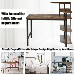 - Modern Industrial Style with Unique Design: Rustic brown industrial desk showcases modern style that can match well with your home décor. The sided shelves of unique layered design and trapezoid shape distinguish the desk from the ordinary ones, which definitely exemplifies your fashionable taste.