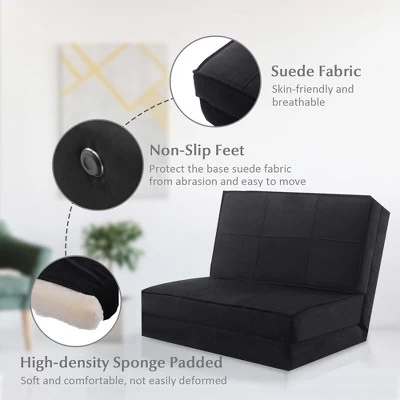 Versatile folding sofa chair easily converts to a lounger or a bed mattress