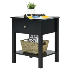 Our nightstand end table with a bottom shelf and a drawer is a simple yet elegant addition to your bedroom or living room, providing just the amount of storage space and functionality you need. In addition, the metal knob adds a subtle accent. This product features one drawer for storing your private items. There is also an open cube area, which is ideal for storing books, magazines and more reading material. Use the flat top space of this one-drawer nightstand to hold a table lamp, an alarm clock or a phone charging dock. It can be used in the living room as well as the bedroom, where you can add decorative elements such as a vase on the profiled top for impressive looks. Made from MDF panel, it is sturdy and durable and assembles easily. Do not hesitate to buy one!