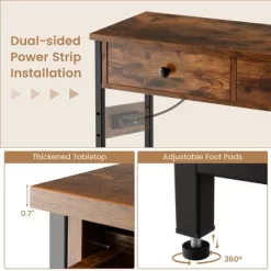 Transform your entryway into a stylish and organized haven with our versatile and functional entryway table! With its sleek design and ample storage space, this console table is perfect for showcasing your personal style and decluttering your living room. Two spacious drawers and metal mesh shelves allow for easy organization and access of your sundries and decorations. But that’s not all – this side table is equipped with a built-in power strip for hassle-free device charging. Plus, the dual-sided power strip installation makes the charging station convenient to use. Worried about stability? Take it easy! Our sofa table comes with two anti-tipping kits for secure anchoring to the wall. Crafted with a durable and rustic 0.7” thickened tabletop, this table is built to last. Elevate your entryway experience – order yours now!