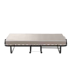 Made in Italy, the Costway Folding Rollaway Guest Bed with Memory Foam Mattress is the perfect solution for overnight guests. Simple and easy to use, the bed sets up in mere seconds and provides guests with an ultra-comfortable, supportive memory-foam topped mattress for a restful night’s sleep. Wood slats and a steel metal frame provide for stability and durability while four casters make mobility easy. When not in use, the bed is compact enough to store away in almost any closet. Use as a convenient and cozy guest bed, kid’s bed, day bed, or lounger. The bed supports up to 275 lbs.