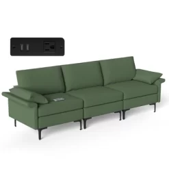 This 3-seat couch is conveniently equipped with a back power strip that includes 2 USB ports and a 3-prong outlet to charge your phone at any time. The metal back has hidden storage boxes to store your valuable items. Our sofa couch provides you with the most needed comfort with high-density sponge cushions and the original distributed spring system. You can feel the soft and warmth on the lint fabric, which is also breathable with fabric absorption. This sofa couch is stably supported by metal legs with non-slip foot pads to ensure an enlarged weight capacity. It has a spacious room where you can fully stretch your body and lie down. This 3-seat modern sofa couch ships in 3 packages. Please note: the 3 packages may not arrive at the same time.