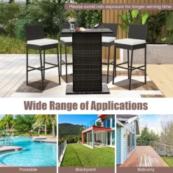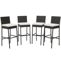 Costway Patio Wicker Barstools Bar Height Chairs W/ Cushions Backyard Off White