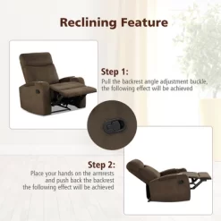 - Modern & Classic Style:With pure color, the recliner chair is classic and elegant, giving you a visual enjoyment. Its classic style and smooth cover help it to get well with other furniture in your room, which is ideal for office, living room, bedroom, study room and other places. You can place it wherever you like.