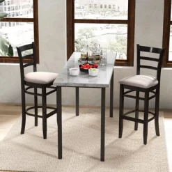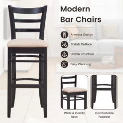 Our bar chairs set of 4 will be perfect for your kitchen islands or dining rooms. The chairs are supported by rubber wood legs, which are not easy to collapse and can perfectly hold your body weight. Equipped with curved backs, padded seats and comfy footrests, our bar chairs create a cozy corner for you and your guests. Besides, our chairs have no arm, so they can be easily stored under any bar. The seat height is about 31”, making our chairs match 40”-43” bars.