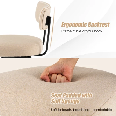 - Ergonomic Upholstered Seat: Featuring a seat padded with soft sponges and covered with breathable fabric, the barstool provides great comfort while sitting. The ergonomic backrest fits the curve of your body. Besides, the comfortable footrests allow you to fully relax your feet.