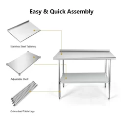 - Easy Assembly & Wide Application: With detailed instruction in the package, this stainless steel work table is easy to assemble within a short time. Moreover, this utility work table is ideal for both commercial and private use. It is widely used in the kitchen, garage, workshop, restaurant, laundry, warehouse or any other places.