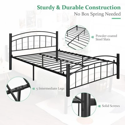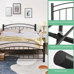 Thanks to the heavy-duty steel slats, the bed frame features outstanding toughness and bending resistance. Moreover, the reinforced support legs takes the stability of desk to higher level. The bottom of bed is high enough for you to store idle things and convenient to clean up. This bed frame offers you a comfortable sleeping experience with noise free design. The exquisite headboard and footboard adds a touch of elegance to your home, making it ideal for bedroom, apartment, etc.