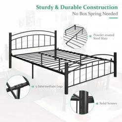 - Reinforced Steel Construction: The bed frame is made of heavy-duty steel slats with powder-coated finish, ensuring a rugged and durable structure for long service time. Besides, it is worthy mentioned that there are 5 stable intermediate legs and solid screws to provide great support for the whole bed frame.