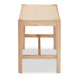Develop your home with the convenient and comfortable seating of the Danyl bench. Made in China, this bench is comprised of a sturdy wood frame with natural rattan accents. Its woven rattan seat creates a charming display inspired by mid-century modern design while providing smooth seating in an entryway or other shared space. The Danyl requires assembly and features an openwork frame that allows light to flow easily throughout the room, lending a more open feel in tight spaces. A lovely accent for any modern layout, the Danyl bench is an expert blend of style and comfort. This is a product of nature and may have variations in areas such as, but not limited to, color, pattern, grain and texture. The hair-like strands of rattan/rattan-fiber are common due to nature of the material. Overall Dimensions: 17.70″ High x 31.50″ Wide x 13.80″ Deep; Seating Area Dimensions: 31.30″ Wide x13.50″ Deep x15.80″ High; Legs: 17.80″ High;