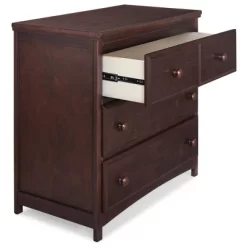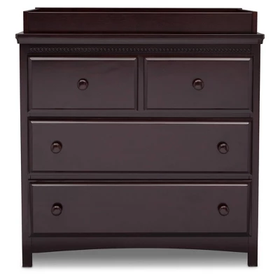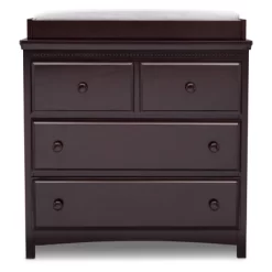 The Emerson 3 Drawer Dresser with Changing Top and Interlocking Drawers by Delta Children features a universal design with classic detailing that’s perfect for any nursery and is a great complement to the Emerson Crib by Delta Children. With a graceful, tailored silhouette and versatile design that evolves with your baby’s needs, this dresser comes with an included topper that turns the dresser into a practical changing table. The topper is easy to remove once your child has outgrown the need, so today’s changing table can transform into tomorrow’s dresser. For your child’s safety, this dresser is outfitted with an interlocking drawer system that limits the number of drawers that can be opened at one time.