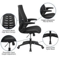 This stylishly designed office chair features LeatherSoft upholstery with white stitch surrounding to comfortably get you through your work day. This chair features an ergonomically contoured back and seat and arms that are comfortably padded. High back office chairs have backs extending to the upper back for greater support. The high back design relieves tension in the lower back, preventing long term strain. The waterfall front seat edge removes pressure from the lower legs and improves circulation. Chair easily swivels 360 degrees to get the maximum use of your workspace without strain. The pneumatic adjustment lever will allow you to easily adjust the seat to your desired height.