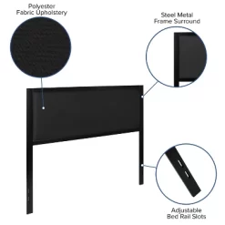 Minimalism is great for traditional and contemporary concepts, and this ultra chic but subtle metal frame, fabric upholstered headboard is ideal in any either of those concepts or any other modern setting. This headboard manages to enlarge the appearance of your room from every angle due to its space saving design. No footboard makes changing the sheets that much easier while also providing more room to stretch out and unwind. Steel legs with adjustable rail slots allow this headboard to be fitted with all standard bed frames. Rest easy, rest well, rest in style.