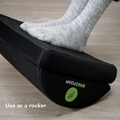 ErgoFoam Adjustable Desk Foot Rest for Added Height (Mesh) – Large Premium Under Desk Footrest | Pet-Friendly Foot Rest Under Desk for Lumbar, Back, Knee Pain | Foot Stool Rocker (Black)At ErgoFoam, our mission is to help you feel your best everyday.Which is why we designed our line of ergonomic foot rests to provide ultimate comfort and firm support at your desk all day long.Looking for a foot rest that’s a bit taller? Then the ErgoFoam adjustable foot rest is perfect for you, letting you add or remove inches to your foot rest for maximum comfort.Pet-friendly Mesh CoverDo you have a pet at home? Our breathable mesh cover was specially designed to make fur easier to clean off than other fabric foot rests.Ultimate Ergonomic Comfort for Your Home OfficeErgoFoam provides firm support for your feet and legs, helping you to sit upright. Elevating your feet has been proven to reduce fatigue and soreness in your legs, back and neck, and improve circulation.Discover the comfort of the ErgoFoam foot rest that thousands of others have already experienced.Adjust for your maximum comfortDo you have shorter legs and need a foot rest that’s a bit taller? Then the adjustable ErgoFoam foot rest is perfect for you, letting you add or remove inches to your foot rest for maximum comfort.Pet-friendly mesh coverDo you have a furry one at home? Our breathable mesh was specially designed to make fur easier to clean off than other fabric foot rests.Orthopedic Teardrop DesignOur “teardrop” structure and orthopedic design places your feet and legs in a more comfortable and ergonomically correct position.Doubles as a rockerFlip it over and ErgoFoam becomes a rocker to keep your feet moving, improving your circulation.Choose the right size for youOnly ErgoFoam offers a variety of different sizes and styles so that you can find the perfect foot rest for you.Pair with our Lumbar Support Pillow or Seat Cushion for the ultimate in ergonomic comfort.