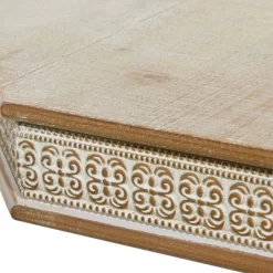 Bring a finishing touch to your home with an inviting appeal with this beautifully crafted accent table. A compact friendly table providing you with additional surface storage space any where in your home. Wood accent table are best displayed near upholstered sofa or canopy beds with books or dried artificial plants for perfect rustic feel. This item ships in 1 carton. Due to the handmade nature of this item, no two will be alike, there will be slight differences in shape, size, and color. Suitable for indoor use only. This item ships fully assembled in one piece. Maximum weight limit is 100 lbs. This is a single brown colored end table. Farmhouse style.