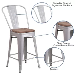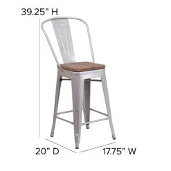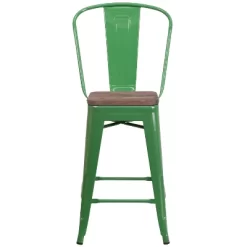 Give yourself a leg up on other seating with this Bistro style counter height stool. This cafe chair will give your dining room, kitchen counter or eatery a refreshing rustic feel with its metal and wood features. This stylish metal stool features a curved back with a vertical slat and a cross brace under the seat for added support and stability. A wood seat adds comfort and beauty. The lower support brace doubles as a footrest, and the glides protect your floor by sliding smoothly when moving it. Designed for both commercial and residential use, this trend-setting colorful counter height stool is a great choice for your restaurant’s dining or bar area or use this contemporary dining chair at home in your kitchen, dining room or home bar. Additional Features: Footrest promotes better sitting experience, Floor Glides protect floors from scratches, Quality constructed metal stool, lightweight for ease of movement, Designed for Indoor Use Only, Dining Stool for kitchen, dining room, bar, restaurant or game room