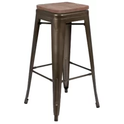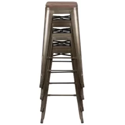 Flash Furniture 30″ High Metal Indoor Bar Stool With Wood Seat – Stackable Set Of 4
