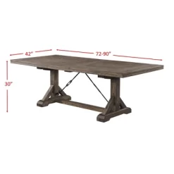 The Picket House Furnishings Flynn Dining Table is dressed in a distressed dark walnut finish, making it the perfect addition to any dining room. This handsome trestle style table features a removable leaf for added space. Turnbuckle metal accents complete the look of this rustic chic table. Add this farmhouse chic dining table to your home today for a look you’ll love to come home to day after day!