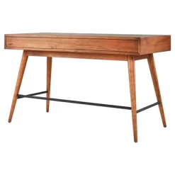 Add Mid Century appeal to your home office with the Foerster Desk from Inspire Q. Clean lines and a warm finish make this table a lovely accent to any décor, while the three drawers provide storage for important papers and office supplies so your space can remain organized.
