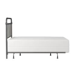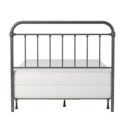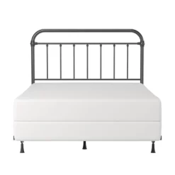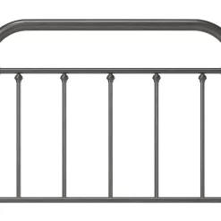 The Kirkland headboard brings the Industrial Farmhouse style to life with a classic rounded square design. This metal headboard can be used as a full or queen size. It has a simple elegance that will compliment a multitude of décor styles. The headboard’s aged pewter finish will help to elevate the design of any bedroom. The combination of castings and spindle pattern throughout offers a look of subtle strength. Box spring and mattress required; not included. Assembly required.