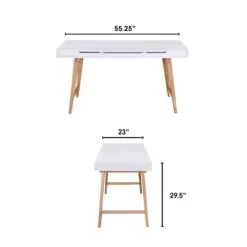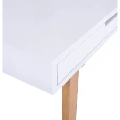 Add style to your work day with this striking white secretary desk. Its tapered wooden legs provide a gentle contrast to its polished white tabletop, creating a look that oozes modern glamour. While this writing desk can elevate your workspace, don’t underestimate its functionality. The spacious desktop can easily accommodate a computer, textbooks, and other items you need. The streamlined drawers underneath boost the storage space to help you work better. While this desk is the perfect piece for any home office or study space, it’d also make an excellent vanity. Whether you’re using it for hard work or a side hustle, you’ll love the practical versatility of this stylish piece.