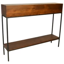 The Halsey Console is Perfect for a large or small spaces great for the entry way or behind the couch.. It boasts a slim cubby to stash mail, keys, gloves, photos or whatever else you want to keep handy. The lower shelf allows for even more storage space. Finely Constructed of Solid Mango Wood and hand crafted Steel Frame.