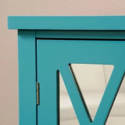 Looking to make a statement? Check out this edgy Caribbean Blue accent storage cabinet from the Harbor View collection. Uniquely designed with a geometric, mirrored pattern on each door front, this piece is sure to catch some eyes. Behind the doors it features an adjustable shelf giving you plenty of space for storing clothes, blankets, board games, you name it! It will take your house from drab to fab.