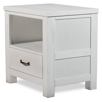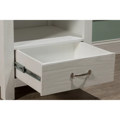 Each Hillsdale Kids & Teen Highlands Nightstand is custom-made with pride and built to last for generations. Solid kiln-dried Pine hardwood construction with dust-mite protection and inset backs ensure durability. Features one exposed cubby and one extra-deep drawer with finished European interior — meaning the drawer is as wide and tall as the drawer front and the inside has been stained to match the external finish. The fully-extending drawer also boasts strong English dovetail construction at the front and back — as well as side-mounted ball bearing guides. This kids’ nightstand has undergone a rigorous nine-step DuraBrush finishing process that strips away any weak elements of the wood to leave behind a more durable surface with a beautiful patina. The resulting strength is ideal for kids’ bedroom furniture. Clean lines and substantial posts with a wire brushed White finish impart classic style that adapts to your child’s changing tastes. . This nightstand ships to you fully assembled and ready to use.
