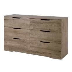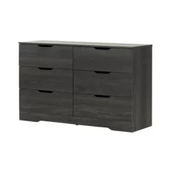 Stow away your wardrobe and other essentials in style with this Holland 6-Drawer Double Dresser from South Shore. Sturdy and durable, this double dresser pairs a clean-lined silhouette and a variety of sleek finishes to pair with both modern and traditional settings alike. Featuring cut-out handles, this six-drawer double dresser offers plenty of room to store clothes, accessories and more, while the smooth top provides a perfect place for framed photos or a stylish lamp. Round out your decor by adding similar items to create a cohesive look.